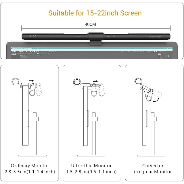 【 スクリーンの反射光を御製・様々なモニターに適用 】 従来のディスクライトの対称光源はモニターに当たって反射され、目に優しくない。Quntis L205-QU LEDモニター掛け式ライトは独自の45°非対称光学設計なので、効果的に目の疲れを和らます。また、フラットスクリーンであり、不規則スクリーンであり、厚さ0.7-3.5cmのモニターに一秒で簡単に設置できる。