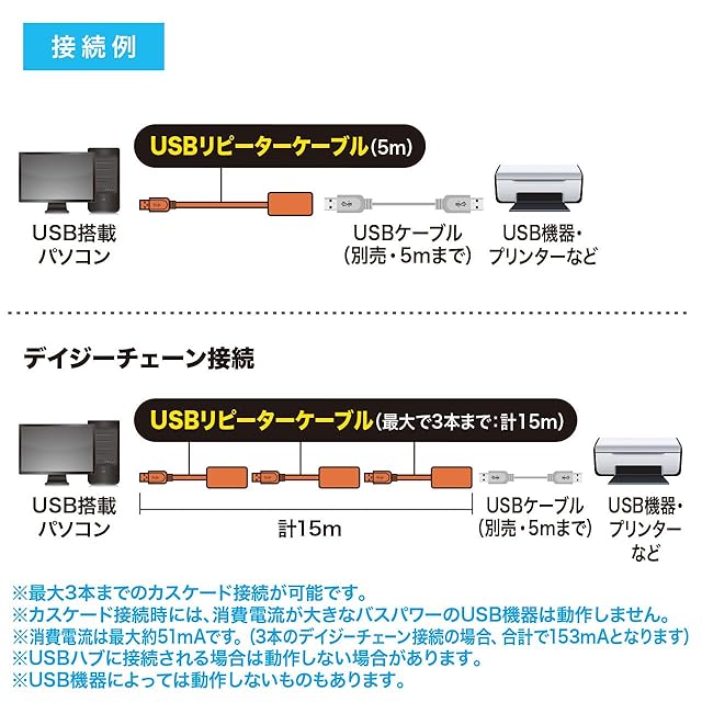 商品名:サンワサプライ 5m延長USBアクティブリピーターケーブル KB-USB-R205N