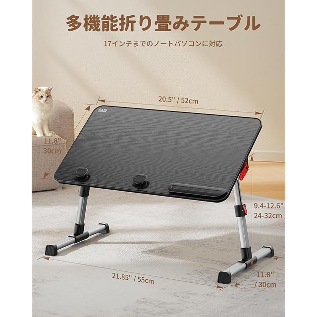 SAIJI ベッド デスク 折りたたみテーブル ベッドテーブル PCパソコンテーブル ローテーブル オフィスデスク ラップデスク 腕保護 高さ 角度調節可能 軽量 勉強 一人暮らし40kg荷重 (ブラック)