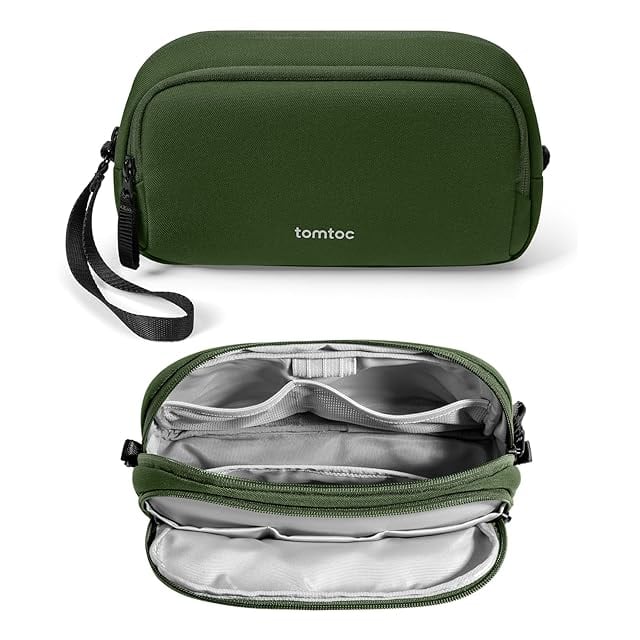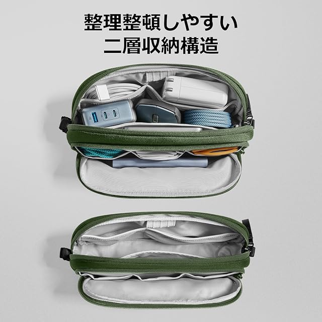 tomtoc ガジェットポーチ 大容量 トラベルポーチ PC周辺小物収納ポーチ 小物入れ バッグ ケース ケーブル アダプタ モバイルバッテリー マウス収納 出張 お出掛け オフィス 旅行 便利グッズ バックインバッグ 二層 自立 撥水 軽量 グリーン | つむぎ屋