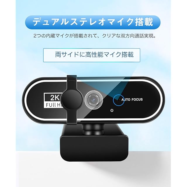 ウェブカメラ Webカメラ フルHD 2K 400万画素 ストリーミング 自動光補正 内蔵マイク 会議用PCカメラ 1/4インチ三脚穴 Windows XP/2000/2003/Vista/7/8/10/11 、Mac OS、Zoom、Teams、Youtubeなどに対応可能 ビデオ会議/オンライン授業/ライブ配信用 ブラック