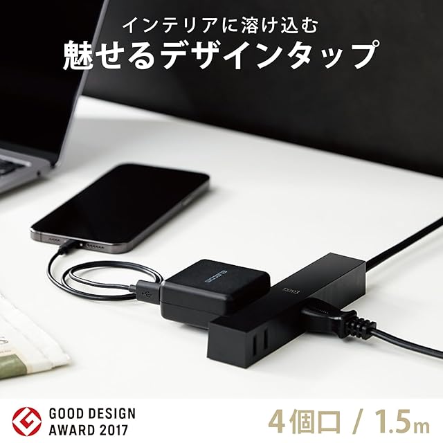 本体が倒れにくく、ケーブルが綺麗に配線できる側面差込口タイプです。