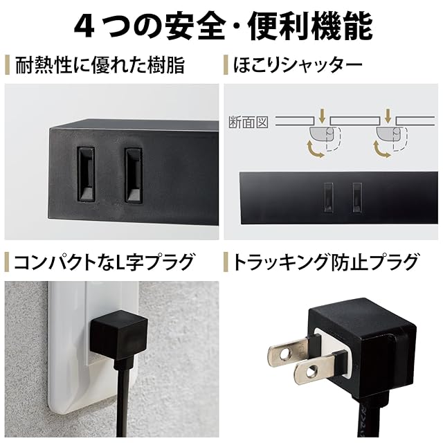 AC差込口には、万一の発熱の際にも融解しにくく、電気火災の防止に有効な耐熱性に優れたユリア樹脂を使用しています。