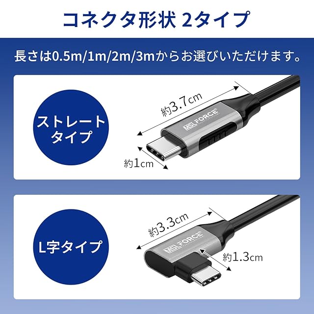 【Type-C to Type-C ケーブル】Type-Cポート付きのデバイス(スマホ、タブレット)をType-Cポート付きのデバイス(パソコン、チャージャー、モバイルバッテリー)に接続するケーブルです。 コネクタ形状はストレートタイプとL字タイプからお選びいただけます。