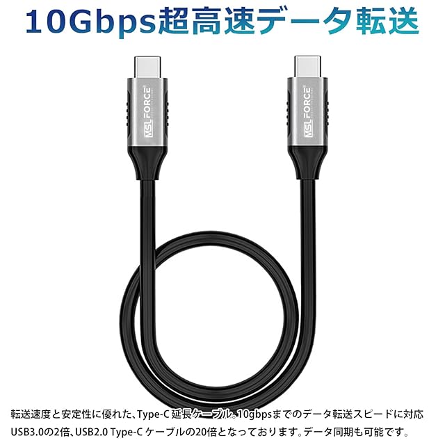 【10Gbps超高速データ転送】このType-CケーブルはUSB 3.2Gen 2に対応しています。 10gbpsまでのデータ転送スピードに対応し、USB 3.2Gen 1 USB 3.1Gen 1 usb3.0の2倍、usb2.0 type-c ケーブルの20倍となっております。