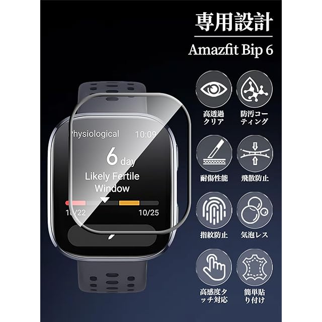 【対応機種】Amazfit Bip 6 専用設計の保護フィルム。正確なサイズカットで画面にぴったりフィットし、端までしっかりとカバー。ケース干渉も防ぎ、安心してご使用いただけます。