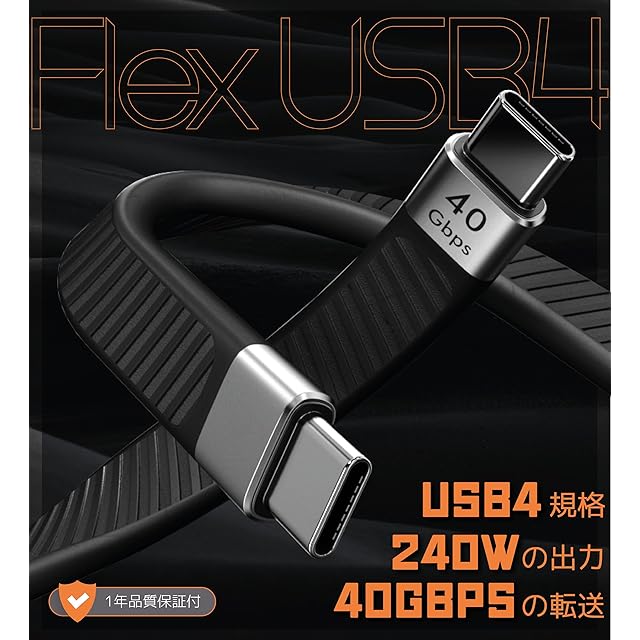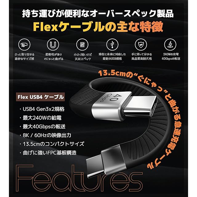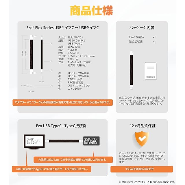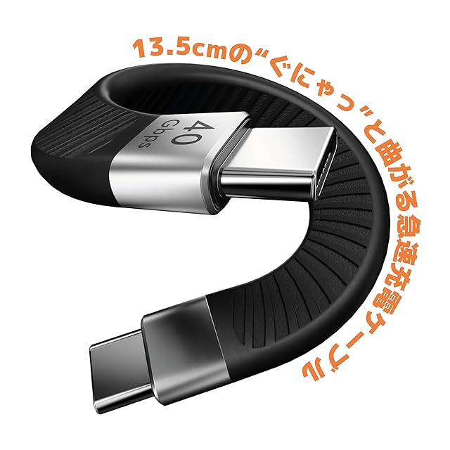 Ezo® Flex USB-C to USB-C 短いケーブル 13.5cm 平形 データ転送・充電ケーブル PD充電対応 0.13m USBC - USBC Type-C to Type-C フラットケーブル Thunderbolt 3 / 4 対応 高速データ転送 高速充電 (USB4) | つむぎ屋