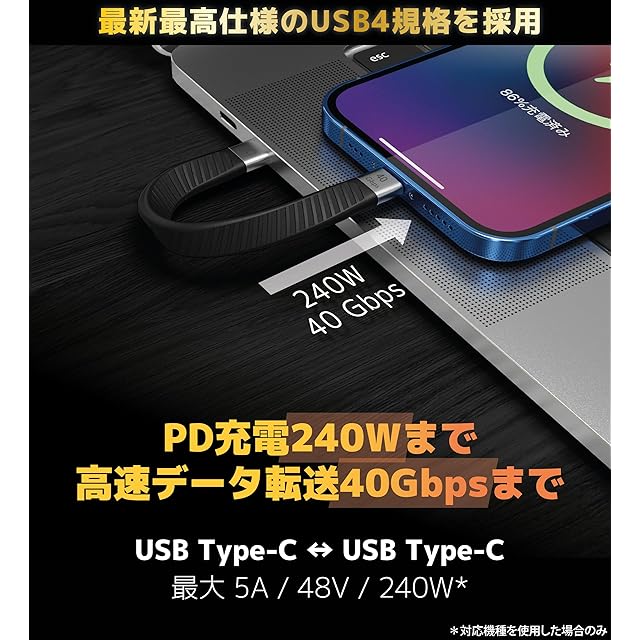 ❸【USB C Power Delivery対応】USB Type-C PD 規格に準拠したケーブルは、22AWG太い電源コードを採用、最大100W (20V×5A)の大電流で接続機器への安定給電が可能です。 1.5時間で新しいMacBookをフル充電できます。自宅用、職場用、旅行用などいろんな場所で大活躍しています。▲PD充電を実現するために、デバイスとアダプタはPD機能をサポートする必要があります。※ご使用のデバイスにより供給スピードが異なります。