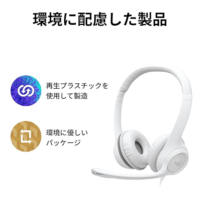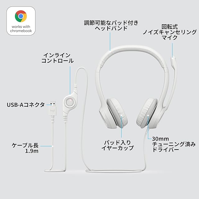 Logicool(ロジクール) ヘッドセット USB 接続 ノイズキャンセリング マイク付き H390rOW ステレオ コントロール 軽量 マイク ヘッドホン ヘッドフォン ホワイト windows mac Chrome テレワーク リモートワーク Web会議 国内正規品 2年間メーカー | つむぎ屋