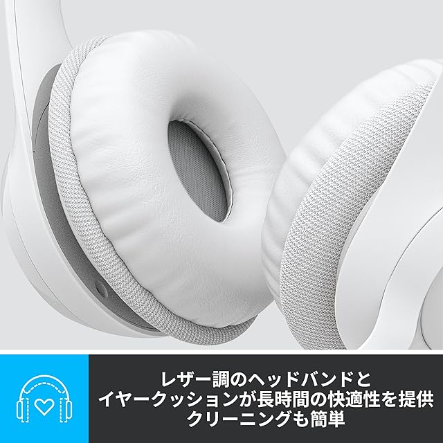 【パッド付きヘッドバンドとイヤーカップ】調節式ヘッドバンドには、スイベルマウント式レザー調イヤークッションが備わり、長時間着用しても快適です。クリーニングなどの手入れも簡単にできます。