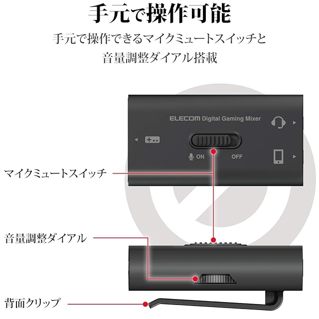 マイクミュートと音量調整を手元で操作できる機能を搭載しています。