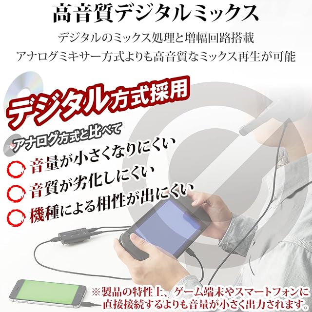 スマホで通話しながらゲーム音を聞ける。ゲームの音とスマホの音をミックスして同時に再生できるデジタルミキサー。