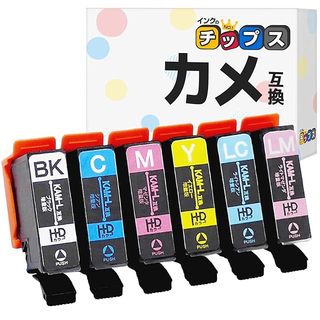 商品名:〈増量版〉 インクのチップス エプソン用 KAM(カメ) 互換インク KAM-6CL-L 6色セット 染料 <発色の良いHDカラー使用> <残量検知対応ICチップ搭載> 対応機種:EP-881A EP-882A EP-883A EP-884A EP-885A EP-886A