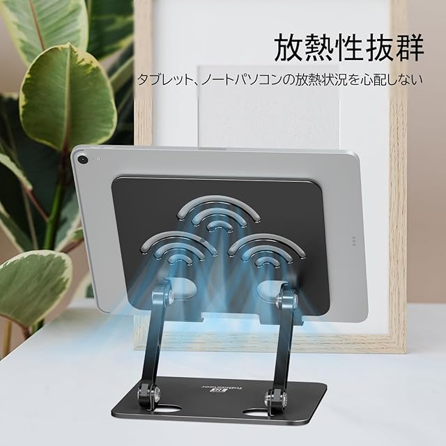 商品名:ipadスタンド-タブレットスタンド-ipad 絵描きホルダー -ToBeoneer(ツビワ)-アイパッド stand-液タブ イラスト 持ち運び 軽量 卓上 折り畳み式 滑り止め 高さ角度調整 人間工学 充電置き台 猫背改善 アルミ 在宅ワーク iPad Pro/Air/Mini/Tab S9 FE/kindle/switchなど4-13インチに対応 (黒 ブラック, 拡大版)
