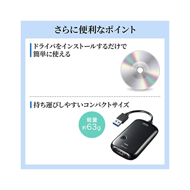 商品名:サンワサプライ USB3.0-HDMIディスプレイアダプタ 4K対応 (USB Aコネクタ オス-HDMIコネクタ メス) USB3.2 Gen1準拠 USB-CVU3HD2N ブラック