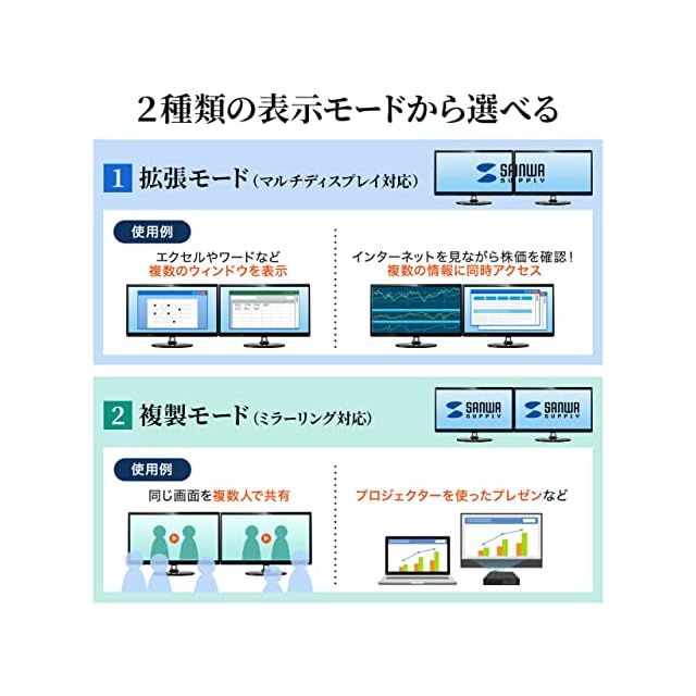 使用場面に合わせて拡張モード、複製モードの2つから選んで変更できます。