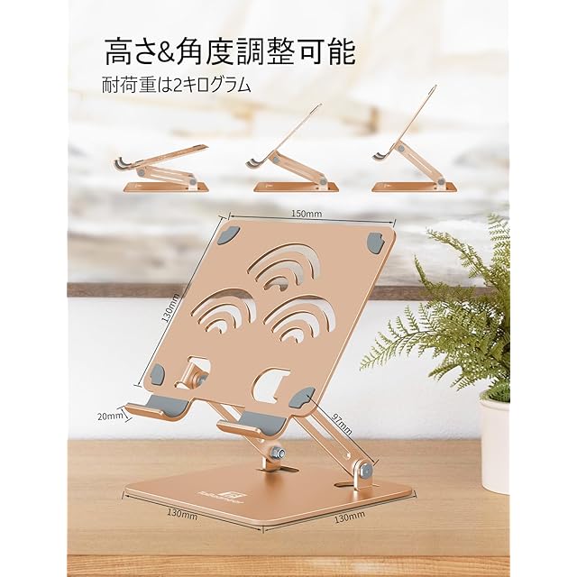 商品名:ipadスタンド - タブレット スタンド - 絵描きホルダー - ToBeoneer(ツビワ) - アイパッド 高さ角度調整可能 持ち運び便利 折りたたみ式 イラスト 置き台 卓上 アルミ製 軽量 充電stand 立て 在宅ワーク ZOOM 会議 ipad pro/mini/air/Kindleなど4-12.9インチに対応 (ゴールド, 標準版)