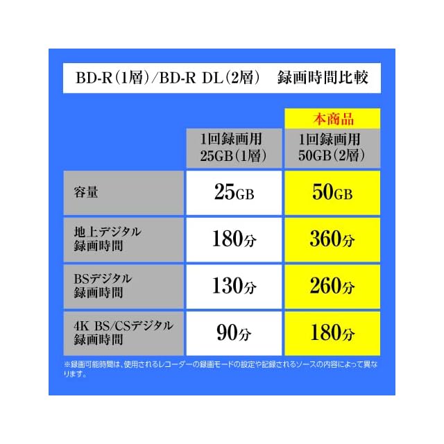 1回録画用BD-R DL 50GB(片面2層)
