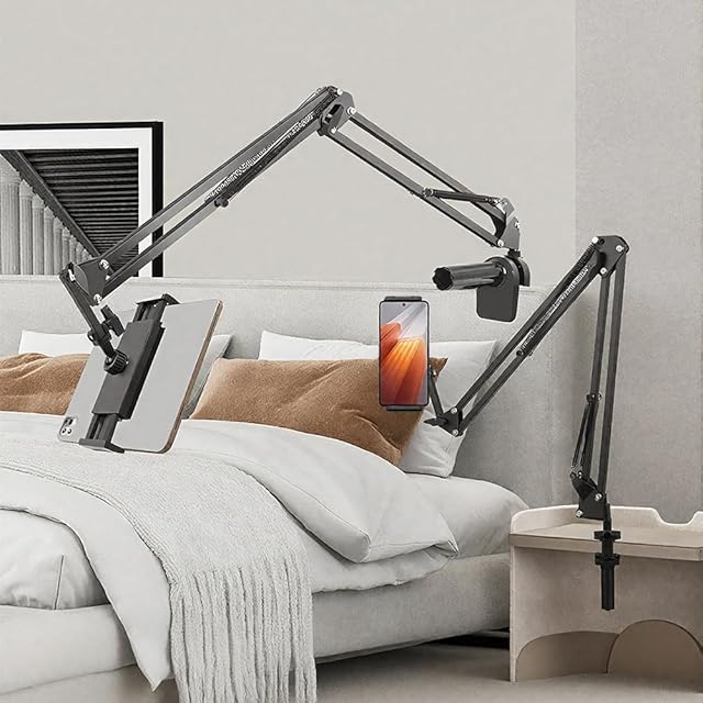 【シーン別活用と安心】寝ながら動画視聴/リモートワーク/オンライン授業に最適。両手が解放されるので、料理中やベッドでの長時間利用でも肩・首の負担軽減。12ヶ月で不具合時は無償交換対応。