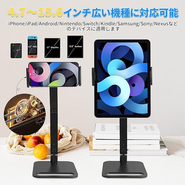 【4.7~15.6インチ対応】ホルダー部の長さは14~25㎝まで伸縮、ほとんどの4.7~15.6インチのスマホ、タブレット、モバイルモニター( iPad Pro 7.9 / 9.7 / 10.5, iPad air 2 3 4, iPad mini2 3 4, Samsung Tab Galaxy S8 S7 S6, Note 6 5, LG, Sony, Android Nexus 7, Kindle, Nintendo Switch, fire hd 8, Huawei MediaPad, iPhone XS/XS Max/XR/X 8 7 6 6s Plus,…)に対応できます。また、寝室での動画鑑賞、YouTubeを見る、在宅勤務、オンライン授業など、どんな場所でもご好みのように使用可能です。