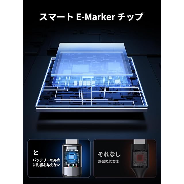 ➤【高品質ナイロン編み・優れた耐久性】高品質ナイロン編み素材採用して従来のケーブルにはない柔らかい質感を実現したUSB-Cケーブルです。30,000回の折り曲げテストを実施、又はケーブル内部のワイヤーを断線から保護し、断線しにくい優れた耐久性を実現。E-Markerチップ搭載により、安心して急速充電することが出来ます。