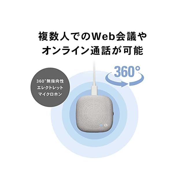 【360°無指向性エレクトレットマイクロホン】複数人でのWeb 会議やオンライン通話が可能。オフィスや自宅など、さまざまな場所で高品質なWeb 会議やオンライン通話ができます。周りの音を拾いすぎずに360 度、全方位をカバーするマイクをスピーカーに内蔵。推奨距離は半径1m 以内、推奨最大人数3 名まで一緒に通話できるため「ちょっと代わってくれる?」といったやりとりもなくなります。