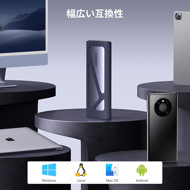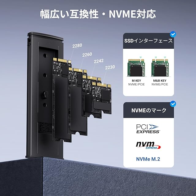 UGREEN M.2 SSD 外付けケース-M.2 NVME/PCIE SSD ケース USB C 3.2 Gen 2接続 UASP対応 10Gbps高速転送速度 アルミ制 8TB容量対応 M.2 NVMe to USB 変更 2230 2242 2260 2280(M-Key M&B Key) SSD対応 ssd 外付けケース 【NVME/PCIE専用】 | つむぎ屋