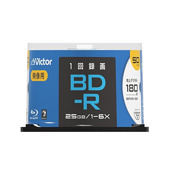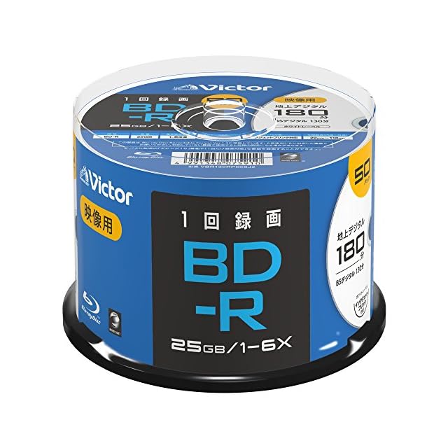 商品名:ビクター(Victor) 1回録画用 ブルーレイディスク BD-R VBR130RP50SJ2 (片面1層/1-6倍速/50枚) ホワイト