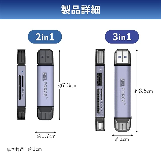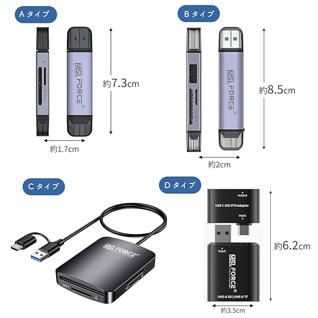 【使用上のご注意】 ・こちらの商品はTypeCの端末には対応しておりますがLightningには対応しておりません。※変換アダプタを使用されても使用できない可能性がございます。・こちらの商品はカードリーダーです。ご使用頂くにはSDもしくはmicroSDカードが必要です。本製品にSDカード、microSDカードは含まれておりません。・本製品の【MSL FORCE】ロゴを上向きにして差し込みしてください。・SDカードを挿入する際はチップの接触面を下向きにして挿入してください。・マイクロSDカードを挿入する際はチップの接触面を上向きにして挿入してください。