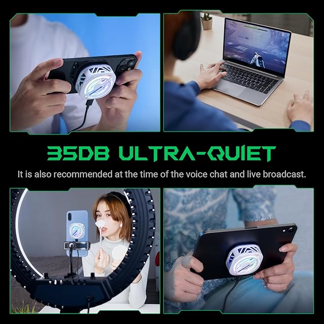 【スムーズなパフォーマンス】ゲーミング携帯用クーラーはデバイスの性能を最大限に引き出し、ゲーム中のフレーム落ちや配信時のラグを防ぎます。ゲームプレイ時、ライブ配信時、車中での動画視聴時にも、クリアでスムーズな映像体験を実現します。上下両面の静音気流設計により効率的な放熱を実現し、手元に熱がこもらないように配慮しています。