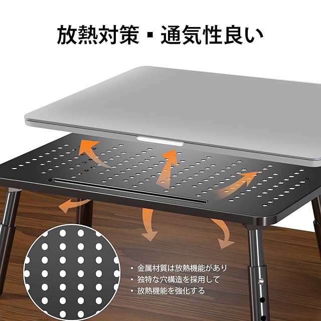 【通気性・自然放熱】空洞デザインにより、ノートパソコンの自然放熱を実現、運行スピードをアップできるだけではなく、パソコン本体にもより良く保護できます。金属製のため、パソコンの熱を吸収したりすることで、パソコンが排出しきれない熱を放散させることもできます。