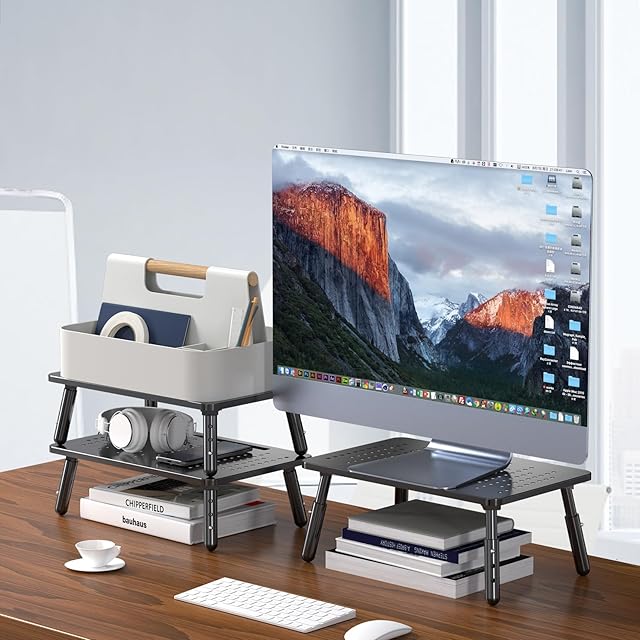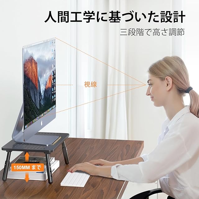 【丈夫で安定性抜群】頑丈なスチール製で、しっかり物を支えます。脚の下部にはゴムパッドがあるので、滑り止めることができて、傷を防止することもできます。20kgまでのノートパソコンとモニターを載せることができます。優れた安定性と絶妙な外観で、デスクに優雅さを加えることができます。
