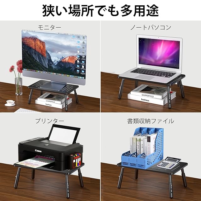 【取り付け簡単&多機能】 工具不要!ただ2分で取り付ける完了が可能です。本体は軽量で持ち運びも便利で、実用な机上台です。モニター以外に、プリンターや電話機、FAX、本など色々なものが設置できるのでシーンを選ばる多機能に使えます。オフィス、寮、学校や研究室やりピングルームなどの場合もオススメです。