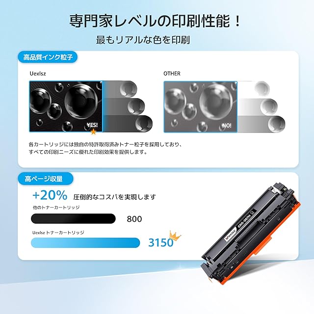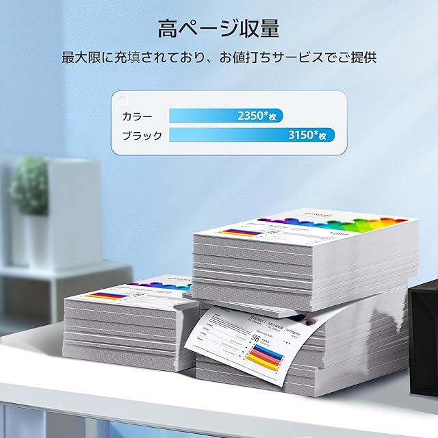 【大容量タイプ】: 約3000枚(A4用紙に5%密度で印字した場合の参考値)低コストで高安定・高発色を実現できます。