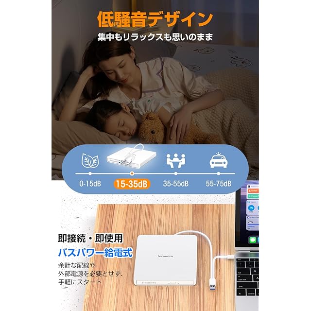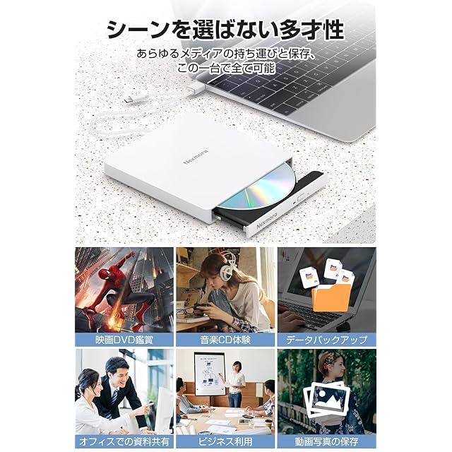 【2025革新型・高速USB3.0対応】 CD DVDドライブ 外付け 静音 DVDプレーヤー 外付けDVDドライブ USB3.0&Type-C両接続 読取/書込可 CDプレーヤー バスパワー駆動 外付けCDドライブ 軽量 薄型 光学ドライブ 外付け CDドライブ Mac PC パソコン Windows11対応 Windows10/8/7XP 外付け CD DVD ドライブ (オフホワイト) | つむぎ屋