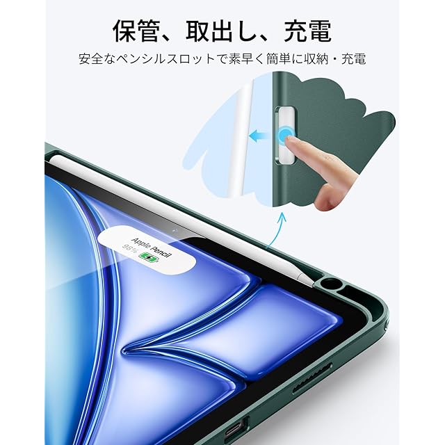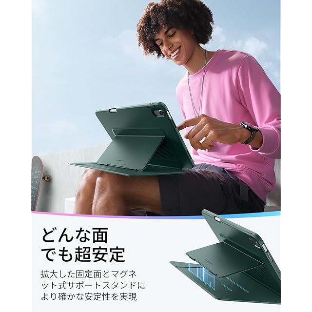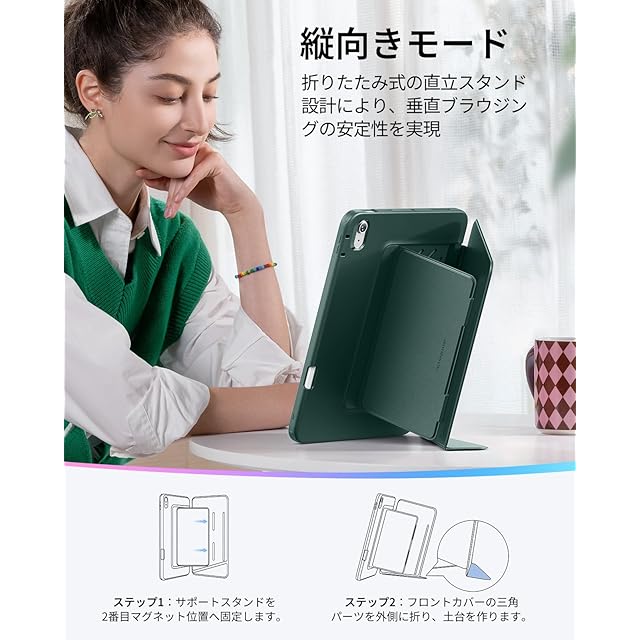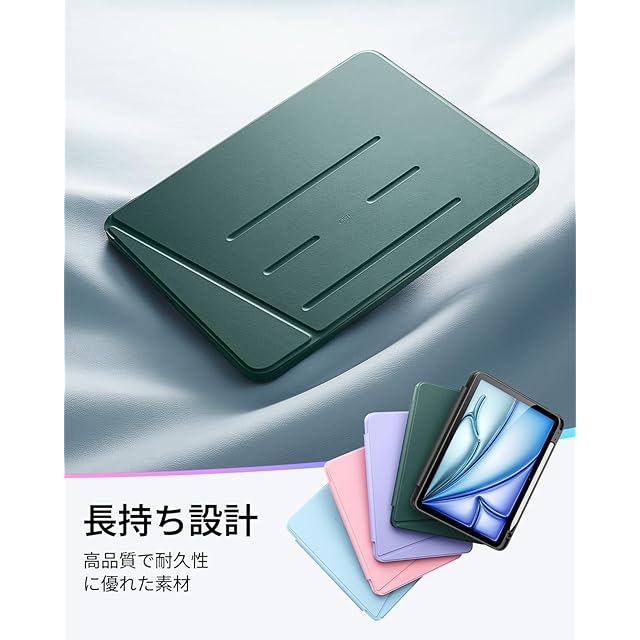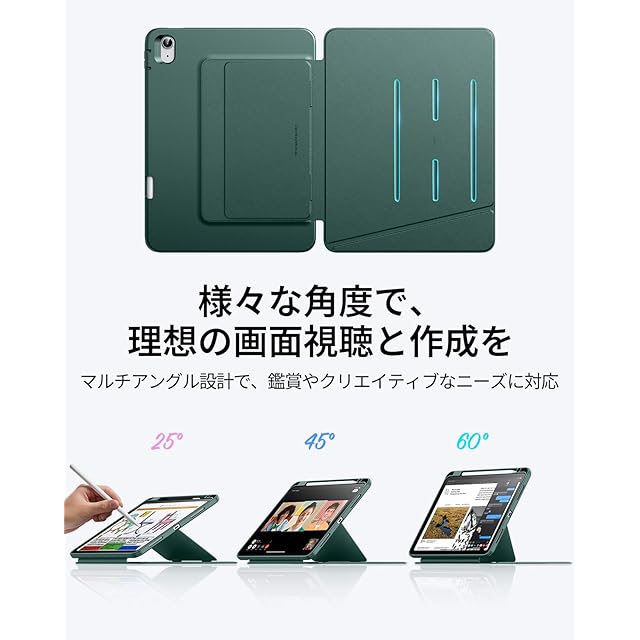 ESR iPad Air 11インチ ケース(M3/M2、2025/2024) iPad Air 第5/4世代 専用カバー(2022/2020) ペン収納 耐衝撃 縦横スタンド 自動ウェイク/スリープ Pencil Pro/USB-C ワイヤレス充電対応 マルチアングルケース 11インチ/10.9インチ Flipシリーズ グリーン | つむぎ屋