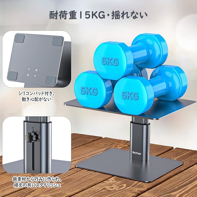 【安定性抜群】BoYataモニター台は重厚な鉄の素材なので安定性が抜群、最大まで15kg耐えられます。板のねじ穴は表裏やネジかピンで精工に加工されており、しっかり剛性と精度が取ることができました。モニター台の底部の四隅に滑り防止ゴム付き、グリップ力はしっかりしており、押しても動くことはありません。●安定性のために、モニタースタンドの支柱とモニターの支柱を一直線上における位置にモニターを設置することをおすすめします。