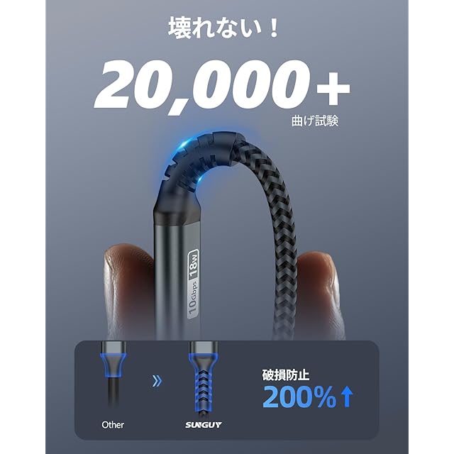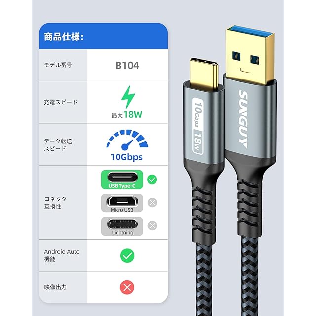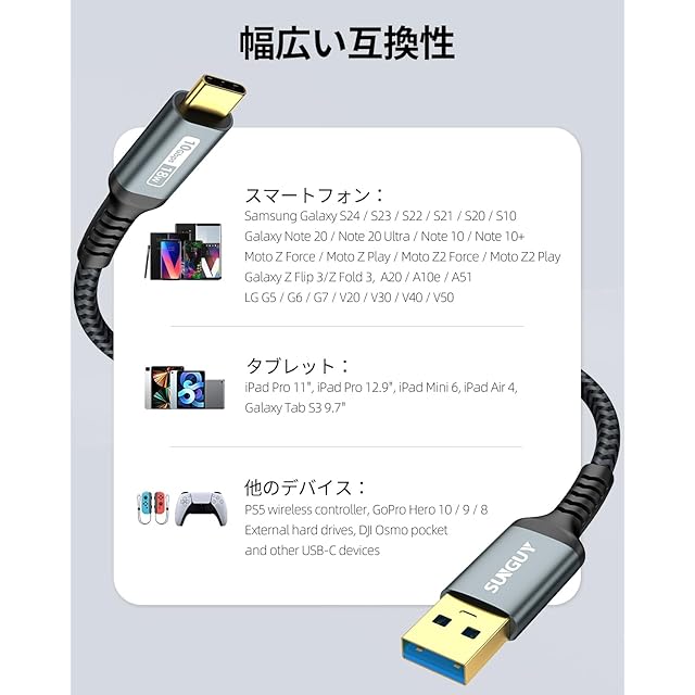 ✅【Gen2 10Gbps 超高速データ転送】SUNGUY USB 3.1 type c ケーブルは、最大10Gbps高速データ転送をサーポートします。Gen1(USB3.0)より約2倍の速さ、HD映画や画像または音楽をわずか数秒で転送できます。それにQC3.0/2.0対応、短時間内に充電も完了します。⚠ご注意:映像出力は非対応です。