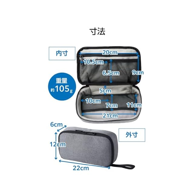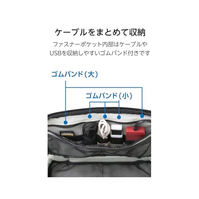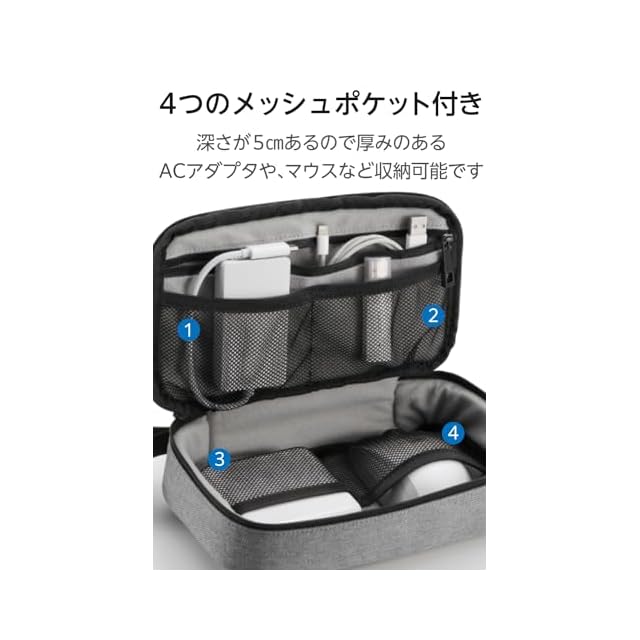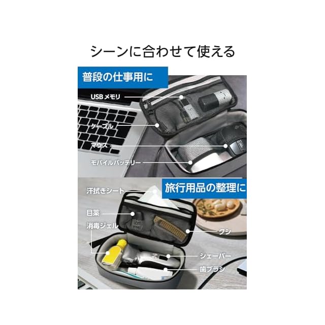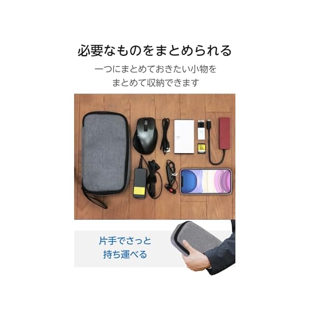 ACアダプターやモバイルバッテリーなど様々なガジェットを収納して持ち運べるポーチです。
