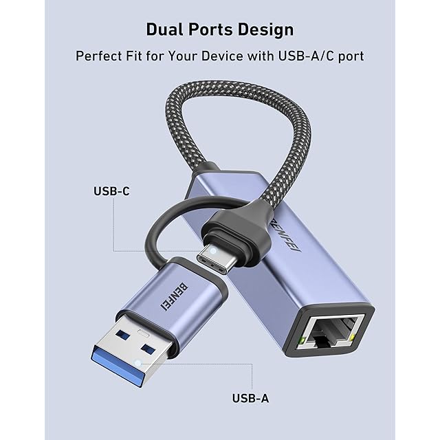 BENFEI 有線LANアダプタ USB A/C - ギガビット イーサネット アダプター、USB 3.0/C -10/100/1000Mbps 高速 RJ45 ギガビットイーサネット LAN ネットワークアダプター MacBook Pro 2022/2021/2020、MacBook Air などに対応 | つむぎ屋