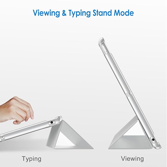 三つ折りフロントカバーにより、視聴とタイピングに合わせた2通りのスタンド角度を調整出来ます。スタンドが正しく機能していることを確認するために、折り目の正しい向きを確認してください