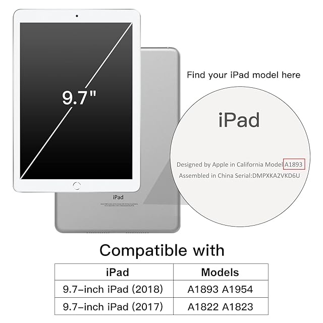 iPad 9.7インチ (2018/2017 モデル) 用の特別デザインです。対応モデル:A1822 A1823 A1893 A1954。iPad Pro 9.7とほかの機種には対応できません。ご購入の前、おデバイスの裏面にあるモデル番号をご確認ください