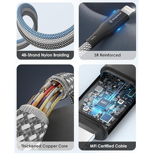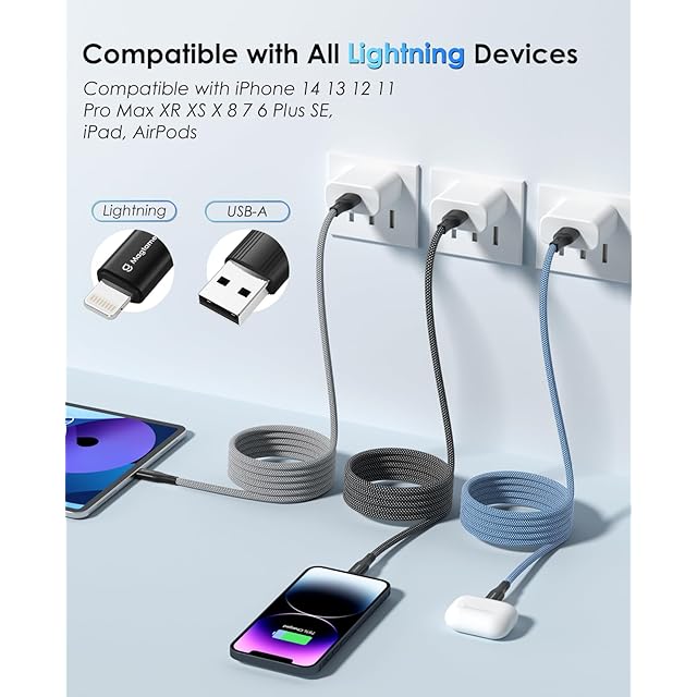 MFI認定済みと同期、26AWG高純度銅線採用:本アイホン充電コードはMFI認証済みだから、iPhoneやiPadとの相性もよく、iOSがバージョンアップしたり、新しい機器に変わっても充電・同期ができます。高純銅線の26AWG線芯を利用され、抵抗が小さくて消耗が低いためコンバージョン率をアップさせます。