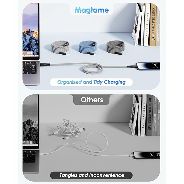 磁気吸着絡まり防止、特許取得済み:ケーブル全体に均一なマグネット内臓でケーブル同士をくっ付けることができるので、マジックバンド等を使わなくても形状記憶によってそのまま丸めて保管が可能なlightning usb-cケーブルです。この特許取得済の独自技術は当社の先進性、独自性、開発力が国内外の先進企業も認めた。