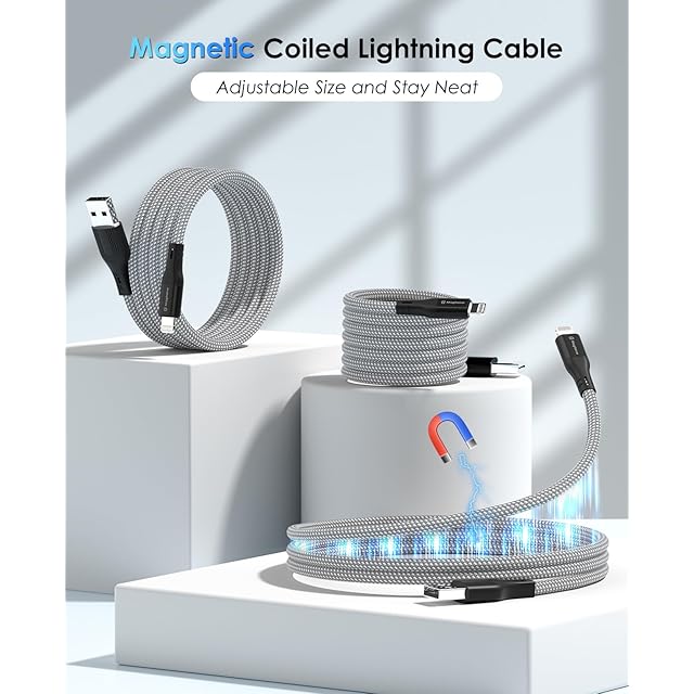 Magtame iphone-充電ケーブル ライトニングケ_ーブル 磁力吸引絡まり防止機能 アイフォン充電ケー_ブル 2.4A急速充電 MFi認証 lightningケーブ_ル 金属製コネクタ iphone_ケーブル iPhone14/13/12/11/X/Pro Max/iPad/AirPods等対応(1.5M-シルバー) | つむぎ屋