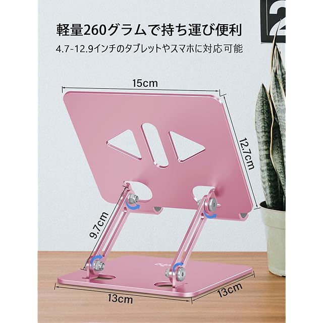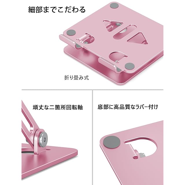 Aoviho(アオビホ) タブレットスタンド ipadスタンド 折り畳み式 tablet stand 描きホルダー アイパッド アルミ製 持ち運び便利 高さ角度調整可能 卓上 液タブ 充電台 スマホ立て 縦置き 横置き テレワーク ネットワーク会議 ipad air/pro/mini/Kindle/switchなど4-12.9インチに対応 (ピンク) | つむぎ屋