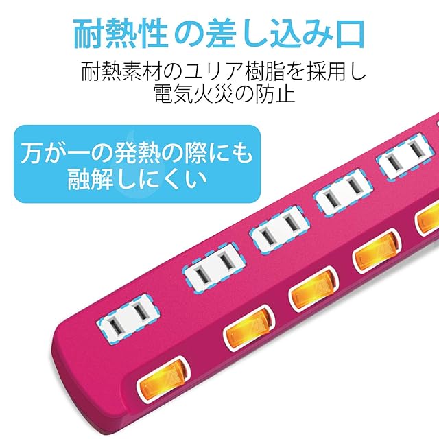 差込口には耐熱性に優れたユリア樹脂を使用していますので、万一の発熱の際にも融解しにくく、電気火災の防止に有効です。