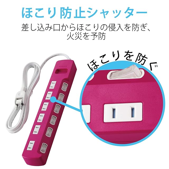 未使用時の差込口へのほこりの浸入を防止するほこり防止シャッターを装備しています。トラッキング現象による火災やお子様のいたずらによる感電・火災の防止に役立ちます。