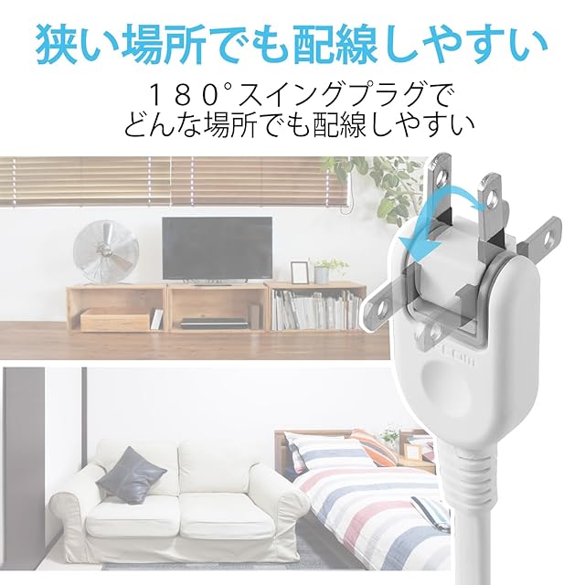 最大サージ電圧12,500Vの高性能雷サージ吸収素子(バリスタ)を内蔵していますので、雷によるパソコンやAV機器などの電子機器への被害防止に有効です。 ※最大サージ電圧12500VはJEC210/212規格に基づく数値です。