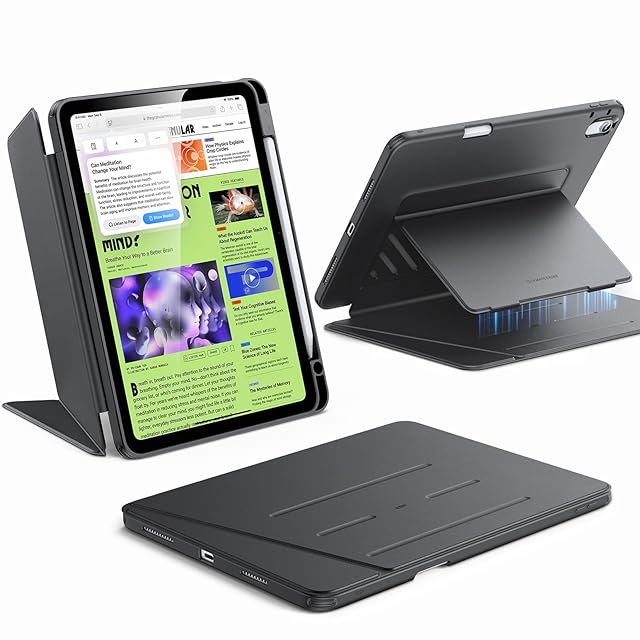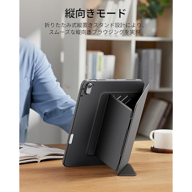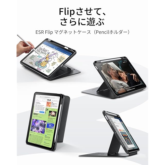 ESR iPad Air 11インチ ケース M3 (2025) / M2 (2024) iPad Air 第5/4世代 専用カバー (2022/2020) ペンシルホルダー付き 縦横スタンド マルチアングルケース 安定設計 Flipシリーズ ブラック